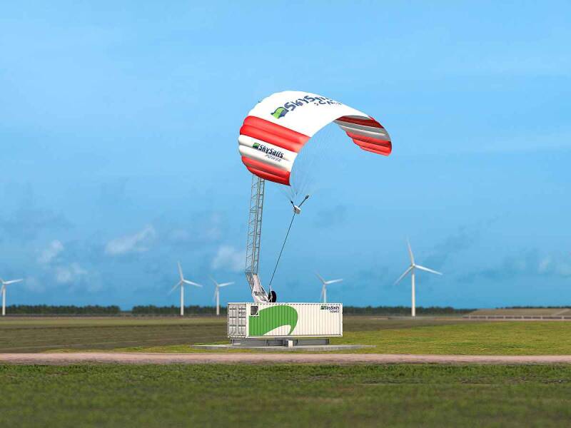 Le prototype de SkySails fonctionne comme un « yoyo » inversé. Une aile de 120 m², attachée à un treuil, s’élève à une altitude de 200 à 800 mètres, décrivant des huit dans le ciel. La traction du câble sur le treuil entraîne un alternateur qui produit de l’électricité. Une fois en altitude maximale, l’aile est redescendue avec une faible prise au vent, consommant à peine une fraction de l’énergie produite durant la montée. Chaque cycle, entièrement automatisé, dure entre deux et trois minutes et ne nécessite aucune intervention humaine.